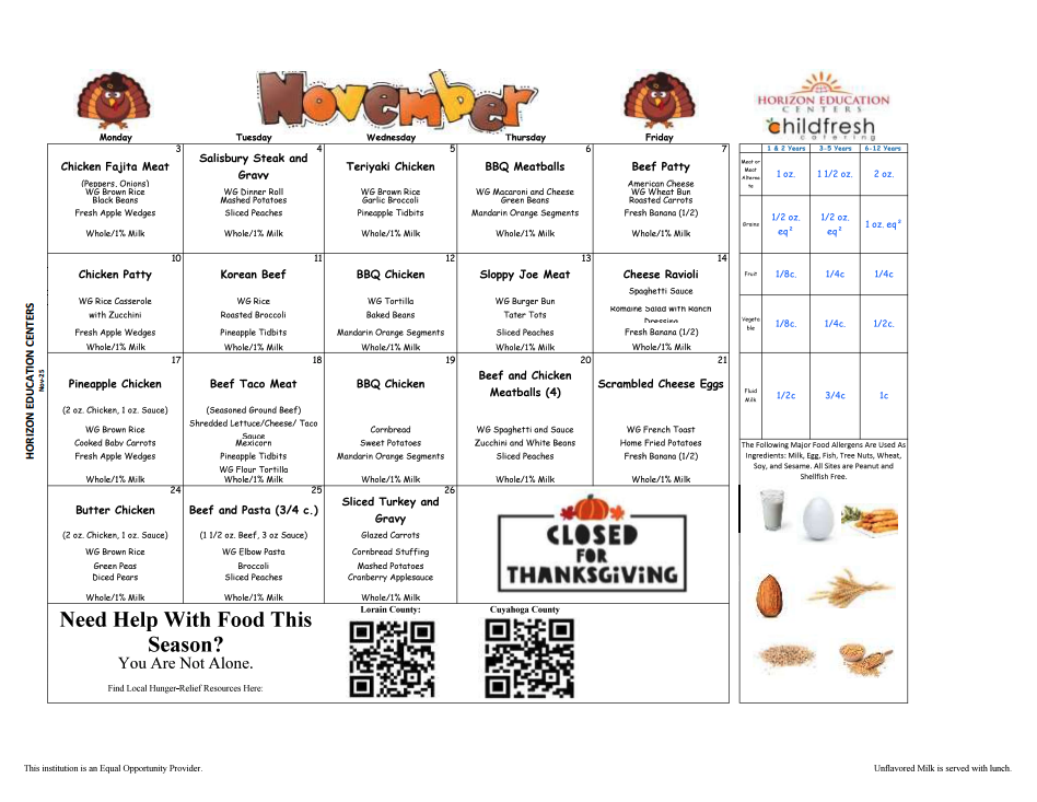 Please click here to view the schedule of dates that all Horizon Education Centers are closed throughout the year.